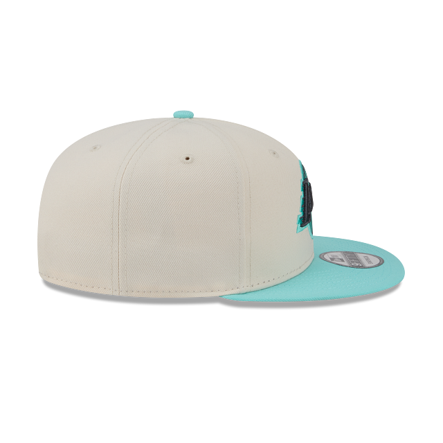 Esta gorra plana New Era 9FIFTY de Los Angeles Lakers de la colección NBA Color Pack Two Tone presenta la corona en color beige, el logotipo de los Lakers bordado en color turquesa en los paneles frontales y el flag de New Era bordado del lado izquierdo. Cómprala ya.