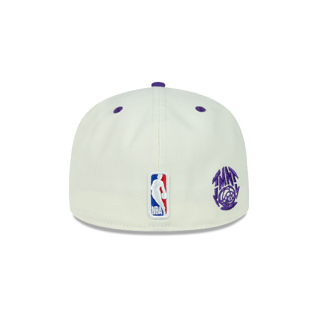 Esta gorra New Era 59FIFTY de Los Angeles Lakers de la colección NBA Tortugas Ninja en color blanco presenta el logo de los Lakers y la figura de Donatello con detalles alusivos bordado en los paneles frontales, visera plana en color morado y undervisor en color amarillo, esencial para cualquier fanático. Cómprala ya.
