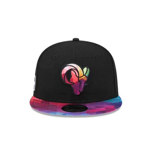 Esta gorra New Era 9FIFTY de Los Angeles Rams de la colección NFL Crucial Catch 2023 en pro de la lucha contra el cáncer presenta un diseño en negro con el logotipo de los Rams y la visera con múltiples colores, un parche de Crucial Catch del lado derecho y el flag de New Era bordado en el lado izquierdo. Apoya a tu equipo y cómprala ya.