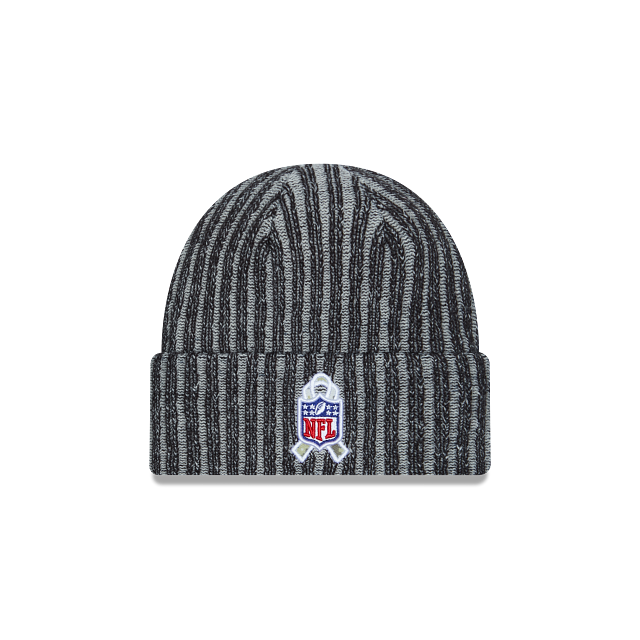 Este Knit New Era de Los Angeles Rams de la colección NFL Salute to Service 2023 presenta un diseño con camuflaje predominantemente negro, el logotipo de los Rams bordado al frente, el logo de NFL al reverso, la bandera de Estados Unidos y el flag de New Era a los costados. Apoya a tu equipo y cómpralo ya.