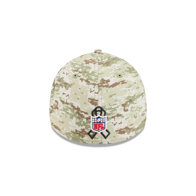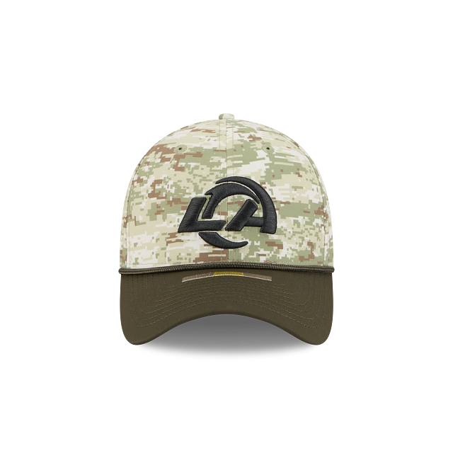 Esta gorra curva New Era 39THIRTY de Los Angeles Rams de la colección NFL Salute to Service 2025 presenta un diseño de camuflaje con el logotipo de los Rams bordado en los paneles frontales, la bandera de Estados Unidos del lado derecho, el logo de la NFL en la parte de atrás, el logo del equipo en el undervisor y el flag de New Era bordado del lado izquierdo. Cómprala ya.