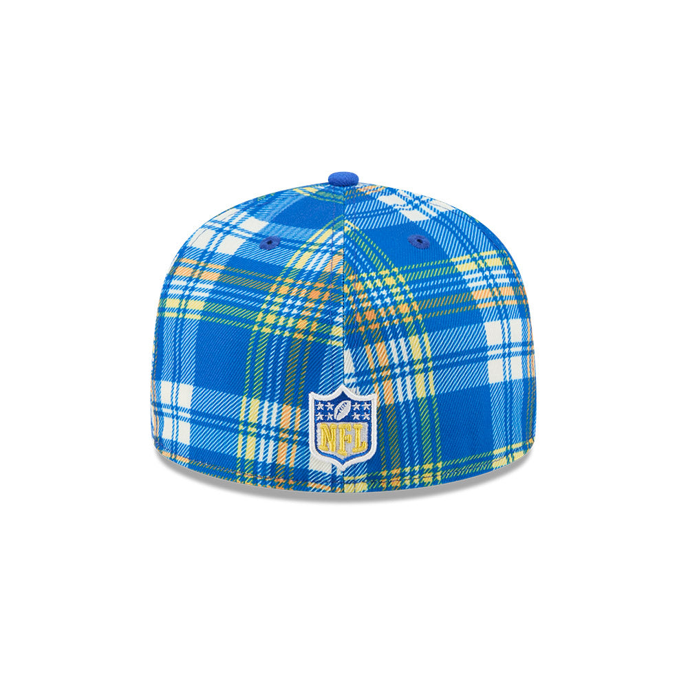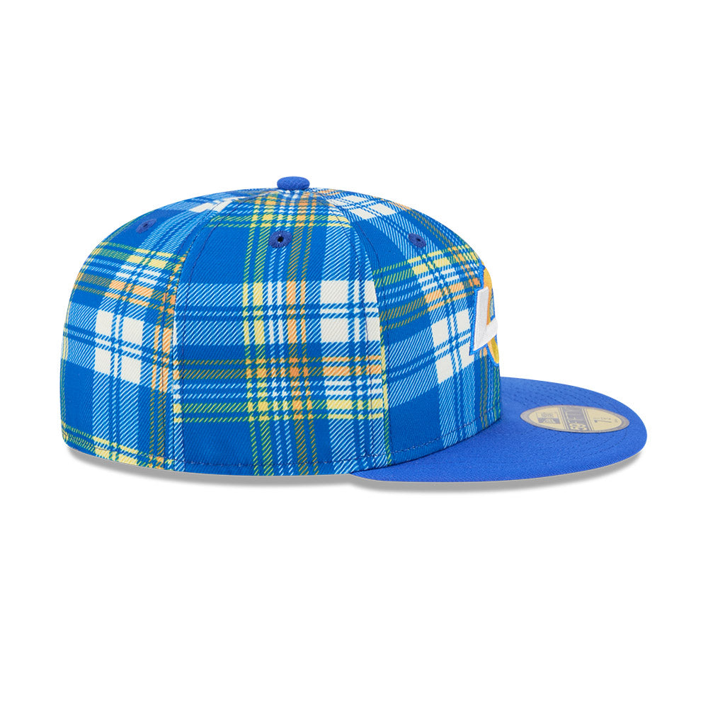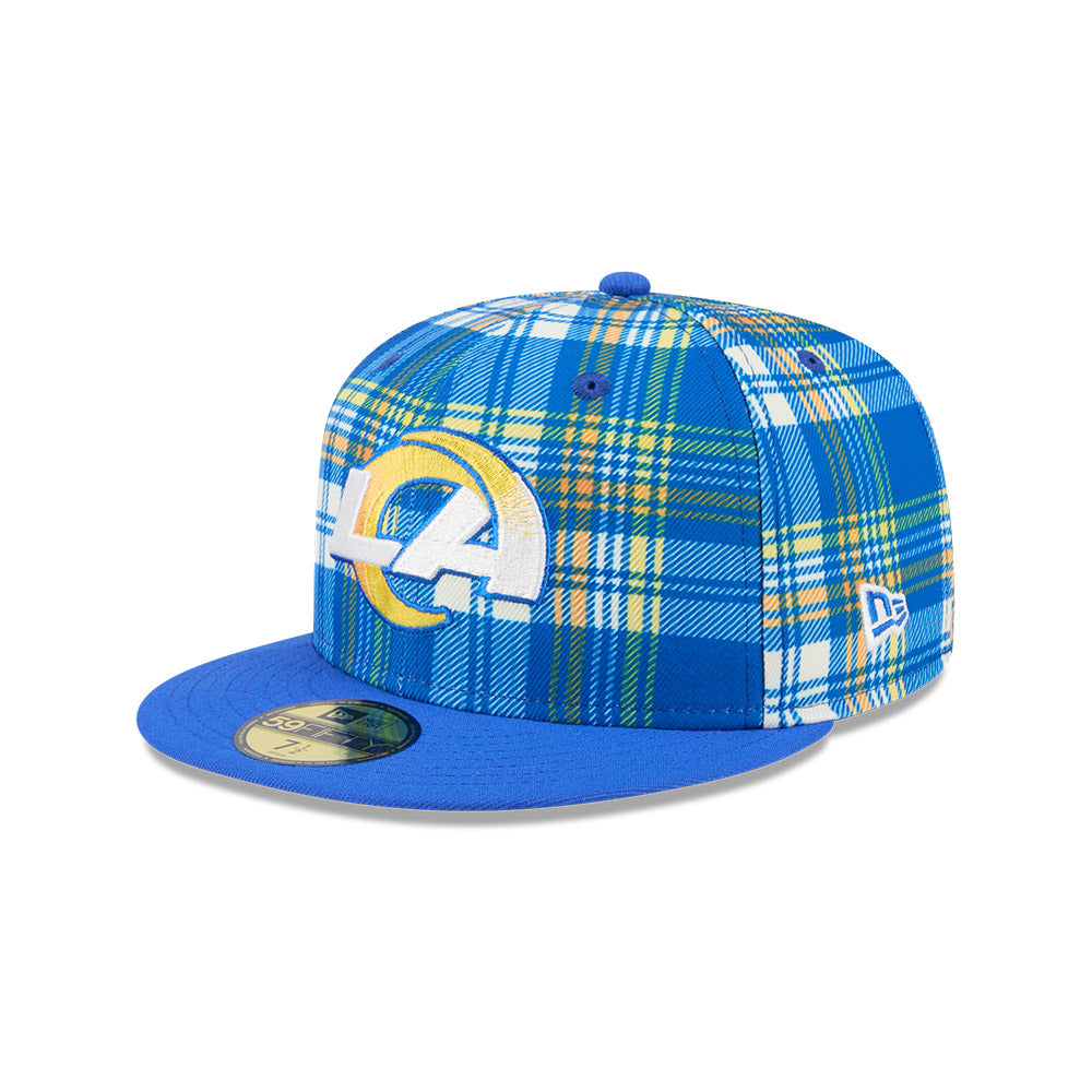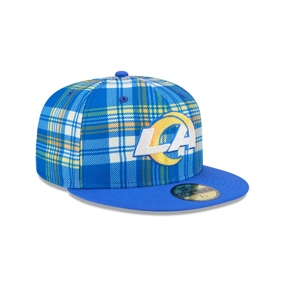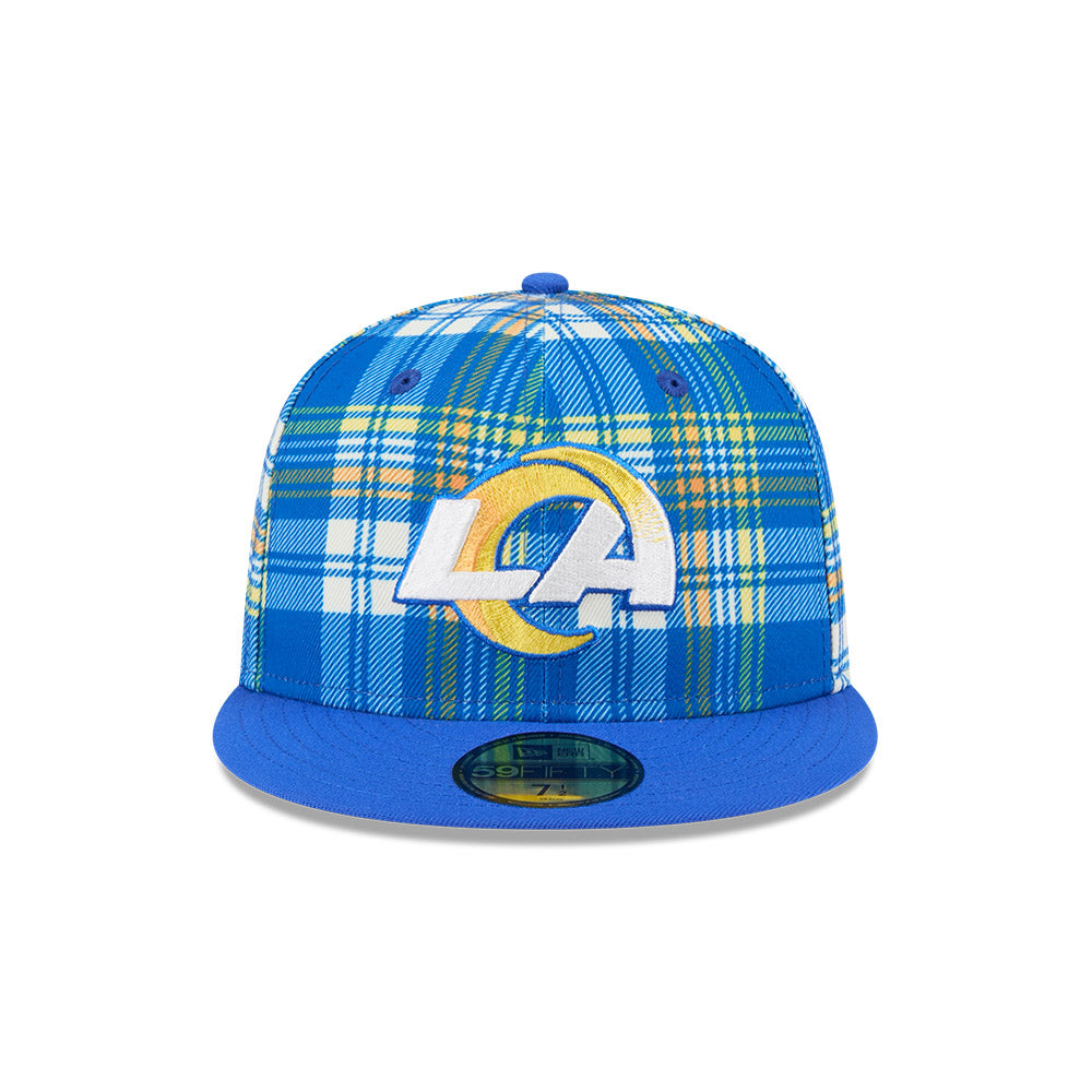 Esta gorra plana New Era 59FIFTY de Los Angeles Rams de la colección NFL Sideline 2024 presenta un diseño a cuadros con el logotipo de los Rams bordado en los paneles frontales y el flag de New Era bordado en el lado izquierdo. Cómprala ya.