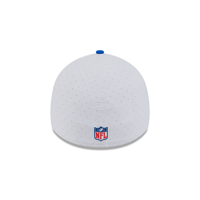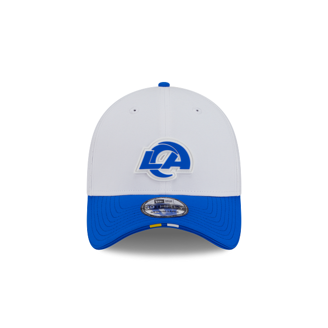 Esta gorra curva New Era 39THIRTY de Los Angeles Rams de la colección NFL Training 2025 presenta una corona en color blanco con el logotipo de los Rams engomado en los paneles frontales, el logo de la NFL al reverso y el flag de New Era engomado del lado izquierdo. Apoya a tu equipo y cómprala ya.
