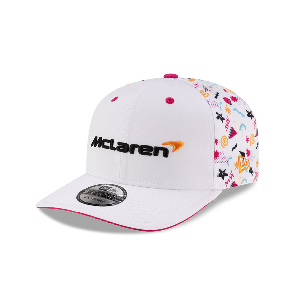 Esta gorra curva New Era 9SEVENTY Stretch Snap de McLaren Formula 1 Team de la colección Miami Race Special presenta el logotipo de McLaren bordado en los paneles frontales, un parche de la carrera del lado derecho, una etiqueta de la escudería al reverso y el flag de New Era bordado del lado izquierdo. Cómprala ya.