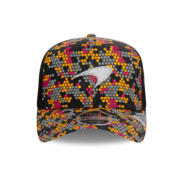 Esta gorra New Era 9FIFTY de Mclaren Racing de la colección Singapore Race Special presenta un diseño con puntos multicolores, el logotipo de McLaren bordado en los paneles frontales, malla tipo trucker en la parte trasera y el flag de New Era bordado en el lado izquierdo. Apoya a tu escudería favorita y cómprala ya.