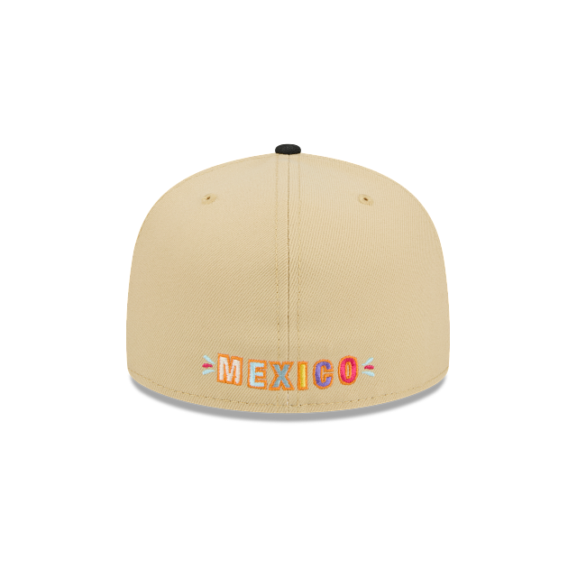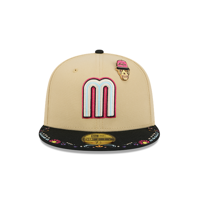 Esta gorra plana New Era 59FIFTY de México de la colección MiLB Skull Pin presenta un diseño inspirado en el Día de Muertos con la icónica M bordada en los paneles frontales acompañado de un pin en forma de calavera, el nombre de México al reverso y el flag de New Era bordado del lado izquierdo. Cómprala ya.