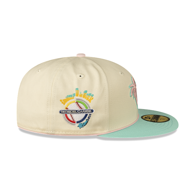 La fiesta del Caribe llegó a New Era con esta gorra 59FIFTY de México de la Serie del Caribe 2024 que presenta un diseño con colores característicos de Miami, sede del torneo, la M bordada en los paneles frontales, el parche del torneo del lado derecho, el logo de la LAMP al reverso y el flag de New Era bordado en el lado izquierdo. Cómprala ya.