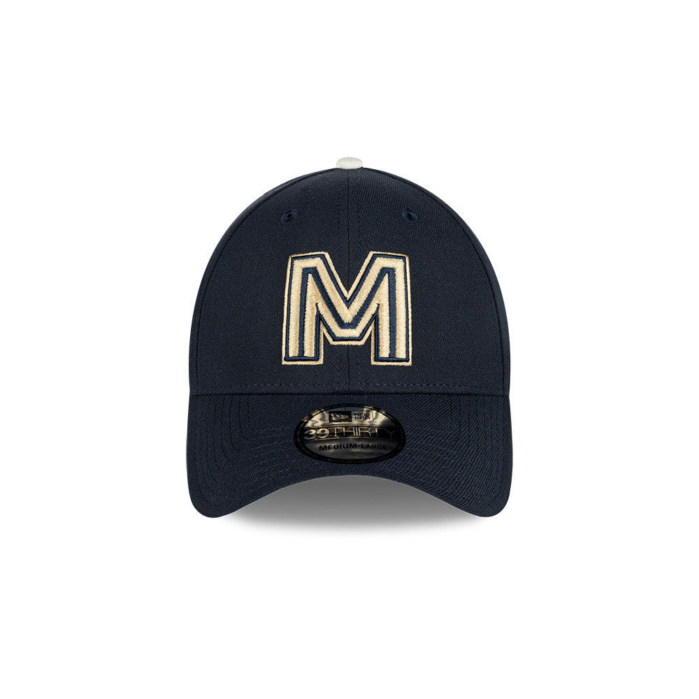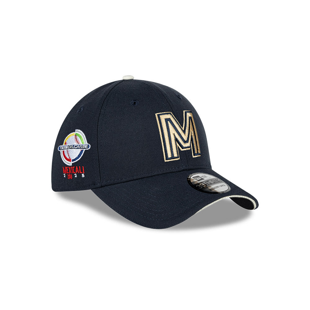 Esta gorra curva New Era 39THIRTY de la colección Serie del Caribe 2025 presenta un diseño con la icónica M de México bordada en los paneles frontales, el parche del torneo del lado derecho, el logo de la LAMP al reverso y el flag de New Era bordado del lado izquierdo. Cómprala ya.