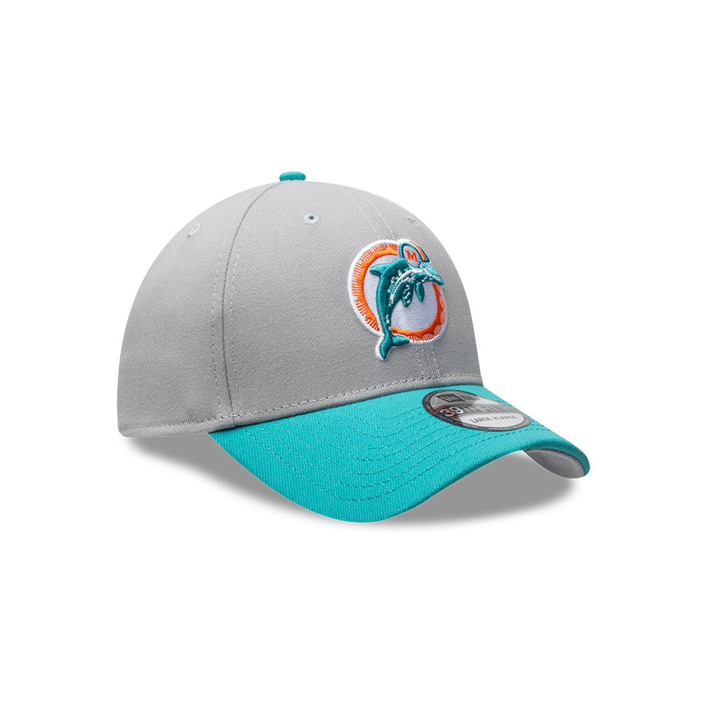 Esta gorra curva New Era 39THIRTY de Miami Dolphins de la colección NFL 2-Tone presenta el logotipo de los Dolphins bordado en los paneles frontales, el logo de la NFL al reverso y el flag de New Era bordado del lado izquierdo. Apoya a tu equipo y cómprala ya.