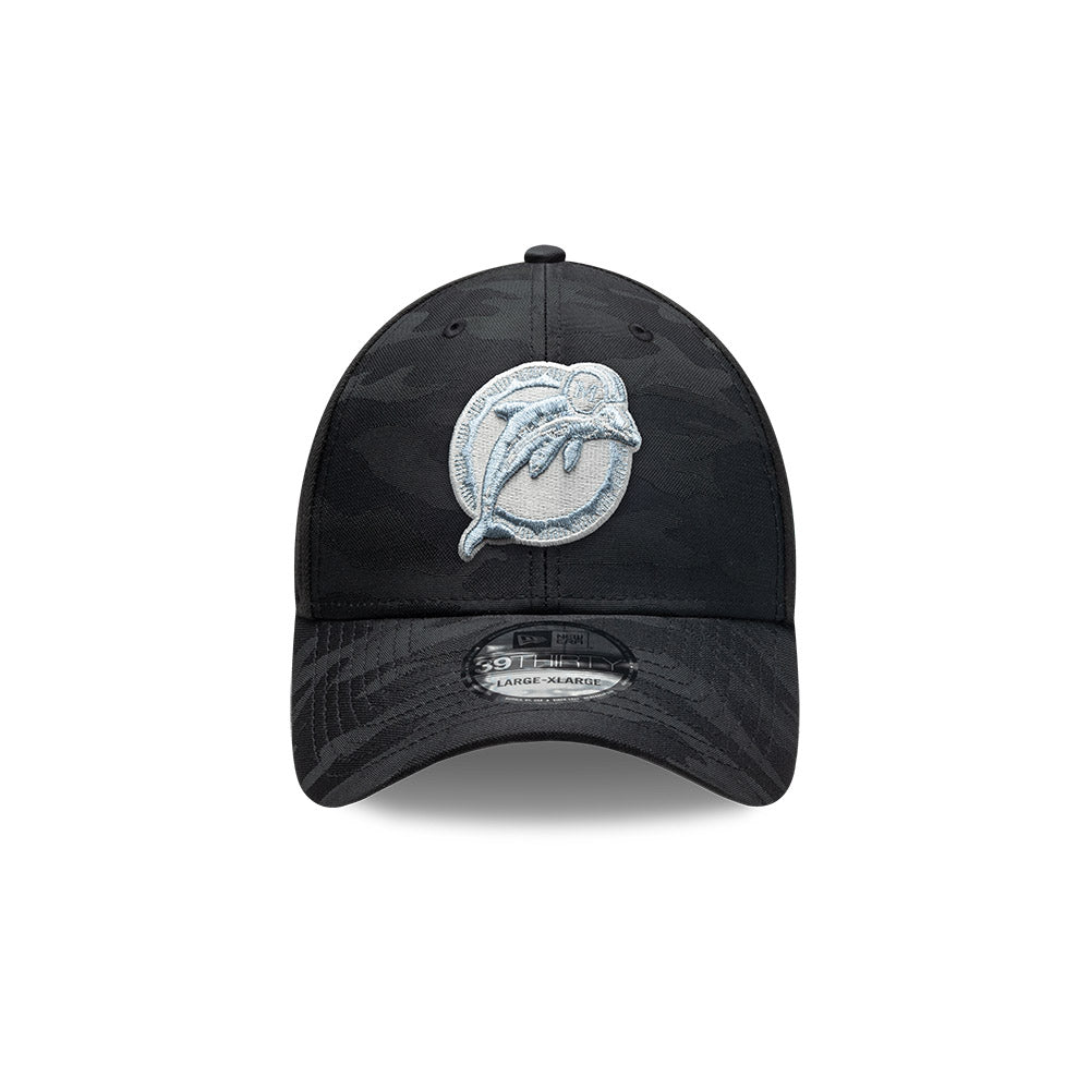 Esta gorra curva New Era 39THIRTY de Miami Dolphins de la colección NFL Black Camo presenta un diseño de camuflaje en color negro con el logotipo de los Dolphins bordado en los paneles frontales, un parche conmemorativo del lado derecho, el logo de la NFL al reverso y el flag de New Era bordado del lado izquierdo. Cómprala ya.