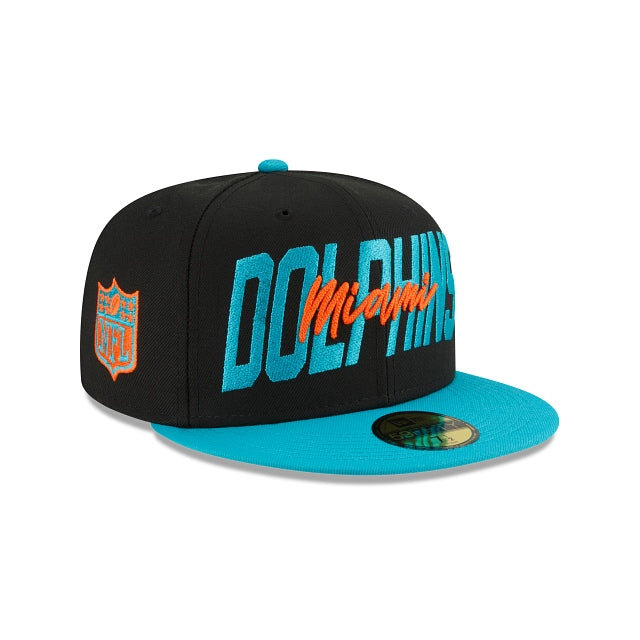 Prepárate para conocer a los nuevos talentos de la NFL con esta 59FIFTY de Miami Dolphins NFL Draft 2022 la cual presenta un script bordado de los Dolphins en los paneles frontales, el logo de la NFL en la parte derecha y el logo del equipo en la parte trasera. Cómprala ya.