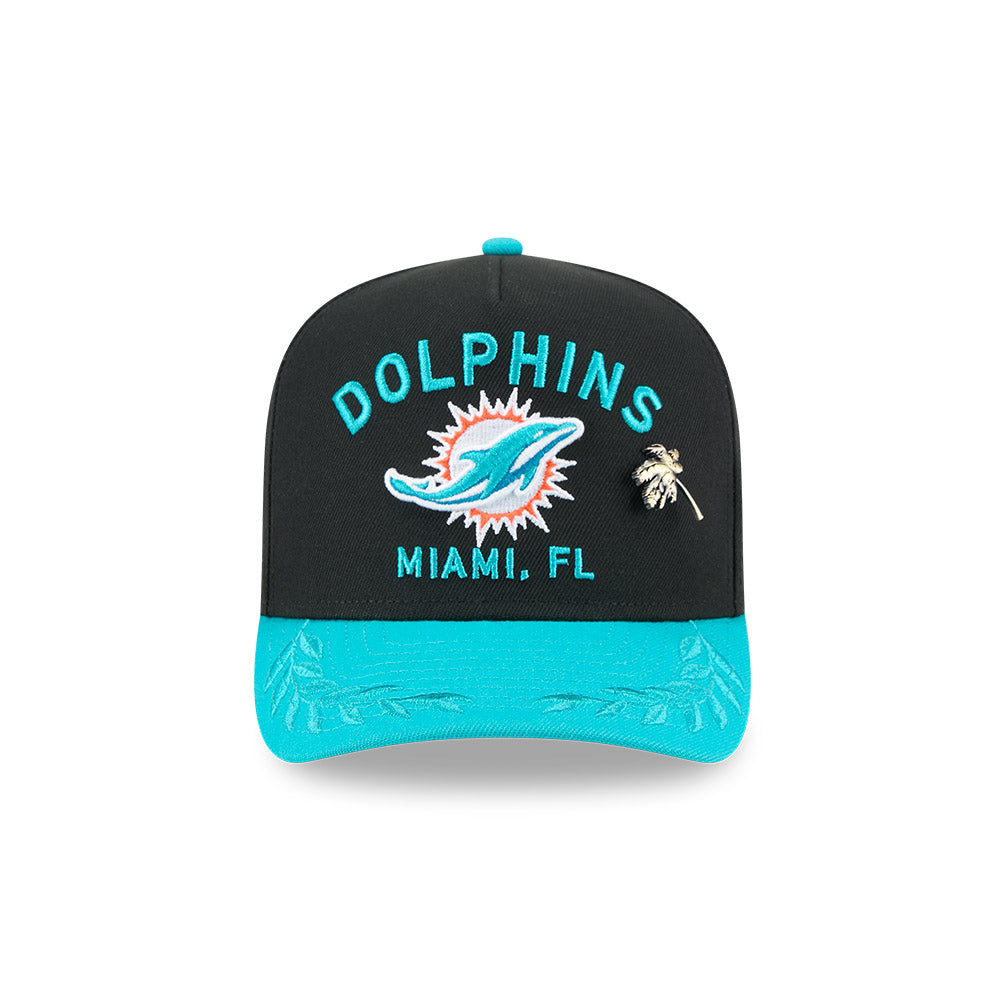 Esta gorra curva New Era 59FIFTY A-Frame de Miami Dolphins de la colección NFL Draft 2025 presenta el nombre y logotipo de los Dolphins bordados en los paneles frontales junto con un pin representativo del equipo, laureles bordados en el visor, el logo de la NFL al reverso y el flag de New Era bordado del lado izquierdo. Cómprala ya.