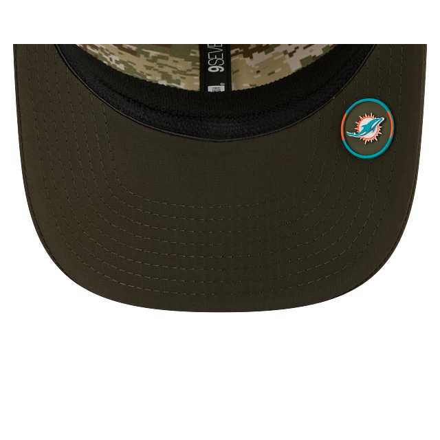 Esta gorra curva New Era 9SEVENTY Stretch Snap de Miami Dolphins de la colección NFL Salute to Service 2025 presenta un diseño en color verde con el logotipo de los Dolphins bordado en los paneles frontales, la bandera de Estados Unidos del lado derecho, malla trucker y el logo de la NFL en la parte de atrás, el logo del equipo en el undervisor y el flag de New Era bordado del lado izquierdo. Cómprala ya.