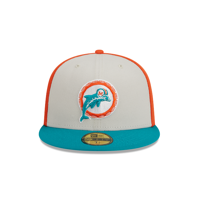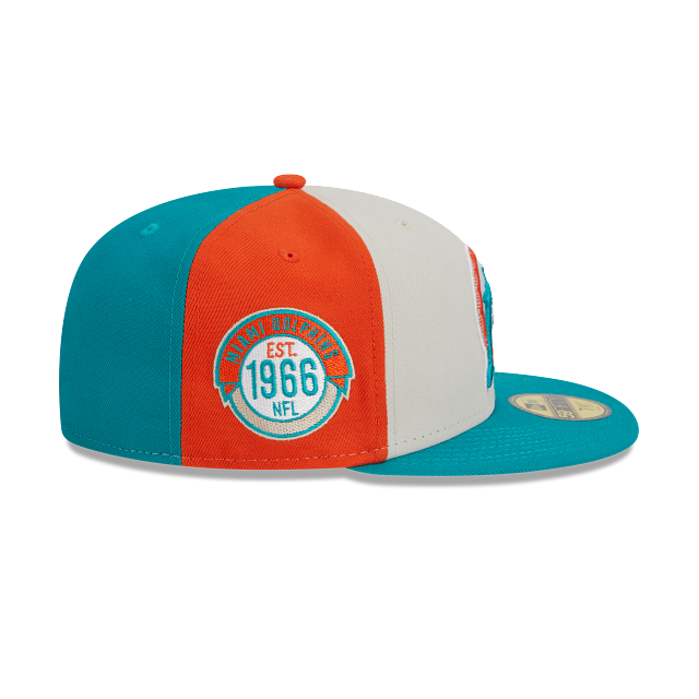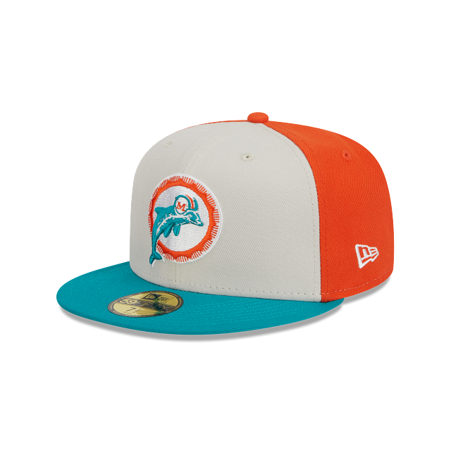 Esta gorra New Era 59FIFTY de Miami Dolphins de la colección NFL Sideline Historic presenta el logotipo retro de los Dolphins bordado en los paneles frontales, un parche con el año de su fundación del lado derecho, y el flag de New Era bordado en el lado izquierdo. Apoya a tu equipo y cómprala ya.