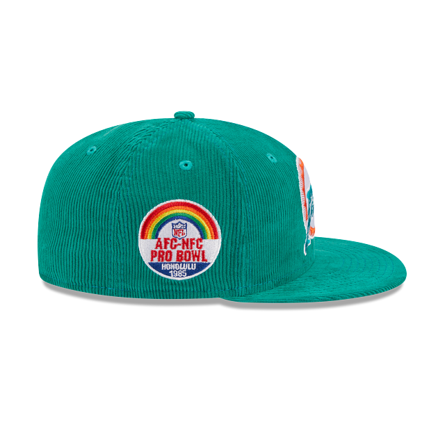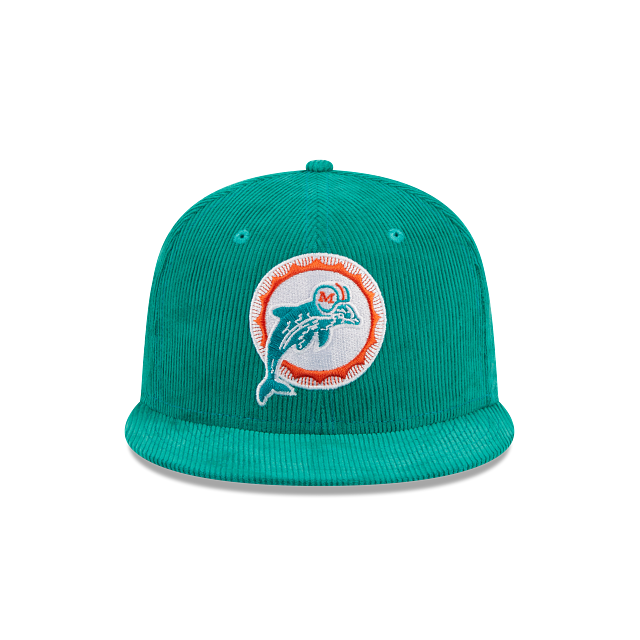 Esta gorra New Era 59FIFTY de Miami Dolphins de la colección NFL Throwback Corduroy presenta la corona en pana y el logo de Dolphins bordado en los paneles frontales, un sidepacth conmemorativo del equipo, visera plana, undervisor en color gris y el logo de la NFL bordado en la parte trasera. Luce con estilo y añade esta gorra a tu carrito.