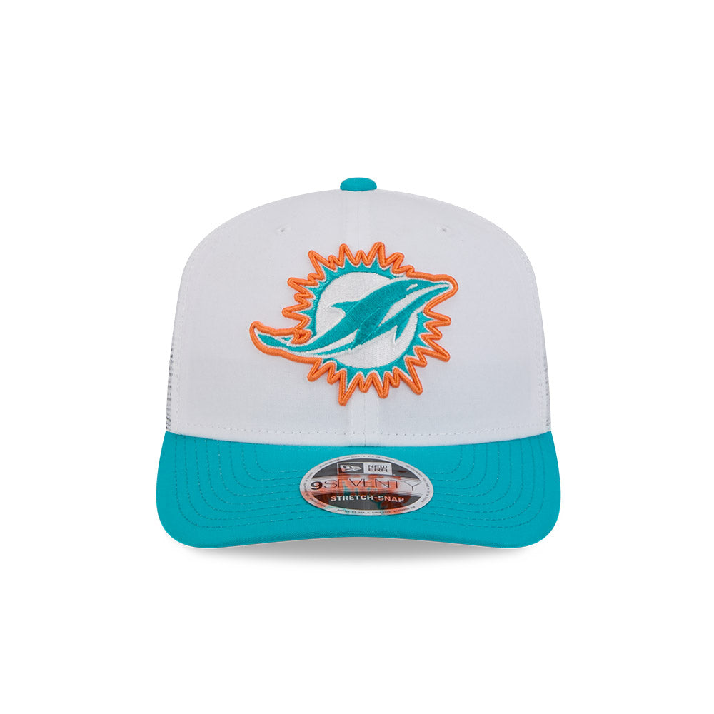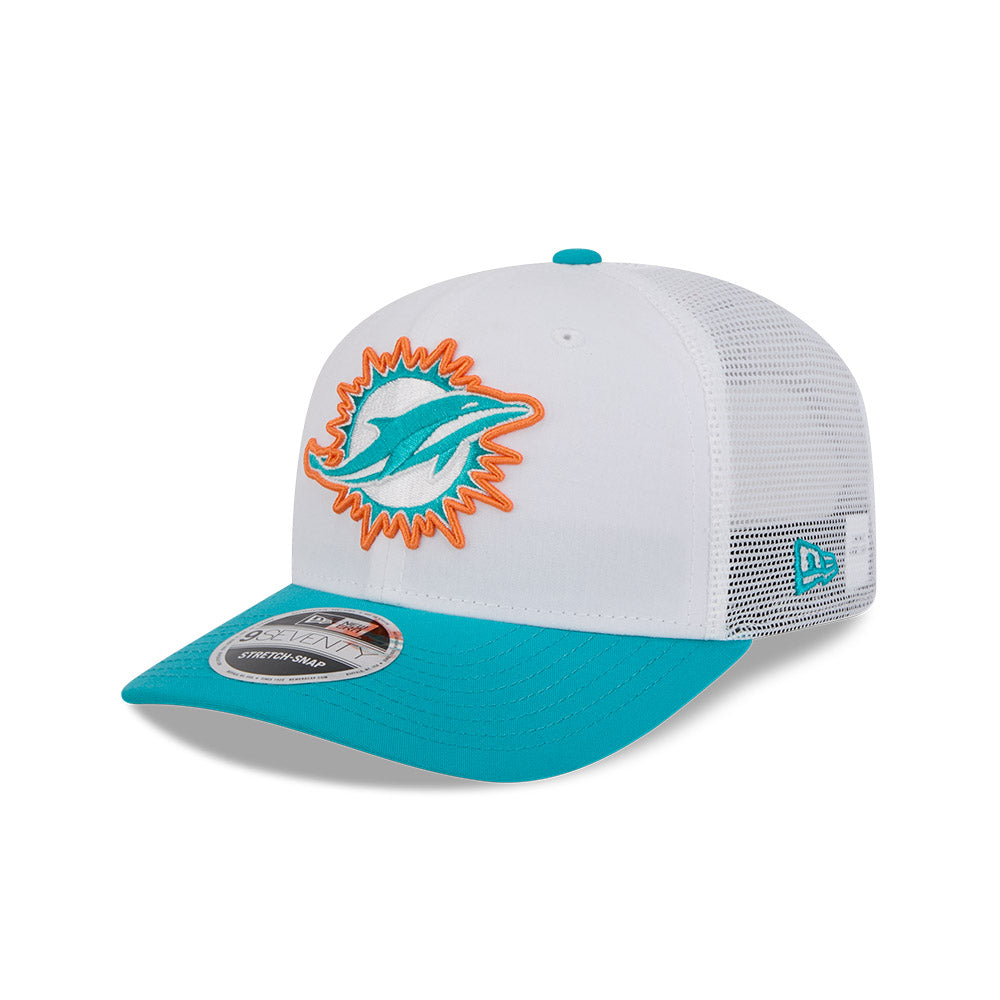 Esta gorra New Era 9SEVENTY de Miami Dolphins de la colección NFL Training Collection 2024 presenta un diseño Two-tone con el logotipo de los Dolphins bordado en los paneles frontales, malla al reverso, el logo de la NFL en la parte trasera y el flag de New Era bordado en el lado izquierdo. ¡Empieza a apoyar a tu equipo y cómprala ya!