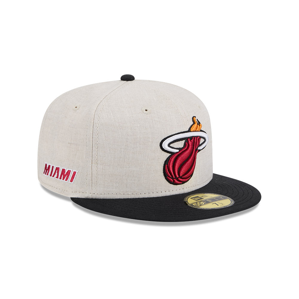 Esta gorra plana New Era 59FIFTY de Miami Heat de la colección NBA Linen presenta un diseño en lino con el logotipo de los Heat bordado en los paneles frontales, la sede del equipo del lado derecho, el logo de la NBA al reverso y el flag de New Era bordado del lado izquierdo. Cómprala ya.