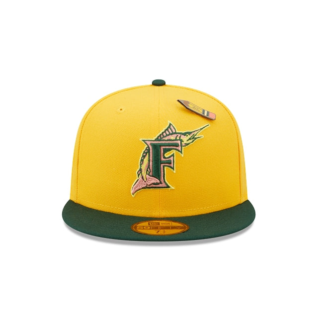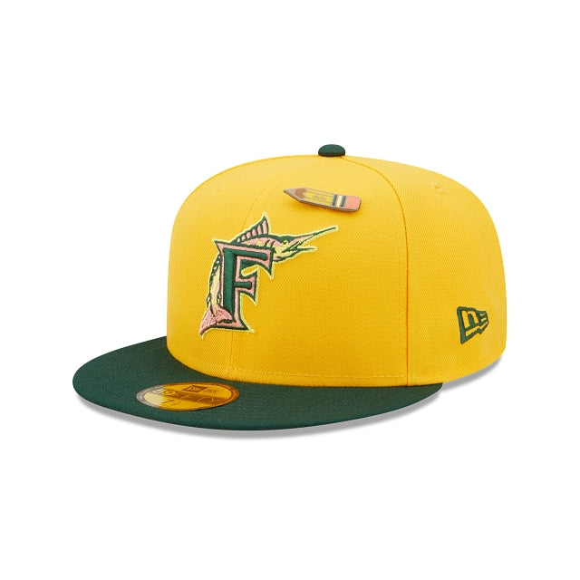 No olvides regresar a clases con esta gorra New Era 59FIFTY de Miami Marlins Back to School la cual presenta el logotipo de los Marlins bordado en los paneles frontales y un parche de World Series en el lado derecho. Detalles adicionales incluyen un pin de lápiz amarillo y undervisor durazno. Cómprala ya.