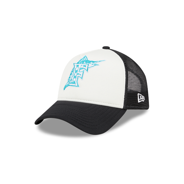 Esta gorra New Era 9FORTY AF Trucker de Miami Marlins de la colección MLB Check Flag presenta el frente blanco con el logotipo de los Marlins en los paneles frontales, un parche conmemorativo del lado derecho, malla y visera del color del equipo, y el flag de New Era bordado en el lado izquierdo. Luce con estilo. Cómprala ya.