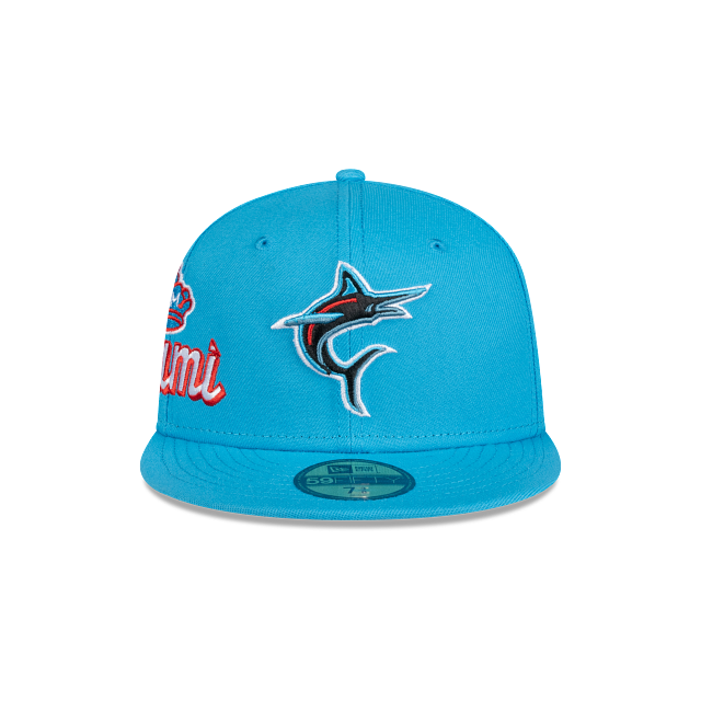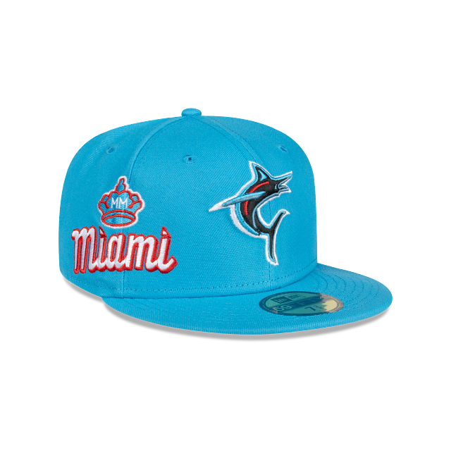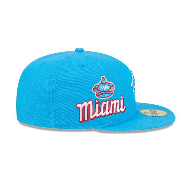 Inspirada en el jersey City Connect, esta gorra New Era 59FIFTY de Miami Marlins de la colección MLB City Connect Fan Pack extrae la originalidad de colores y elementos únicos vinculados a la ciudad circundante y presenta el logotipo de los Marlins bordado en los paneles frontales, el nombre del equipo con una corona del lado derecho, el MLB Batterman al reverso y el flag de New Era bordado en el lado izquierdo. Una gorra con orgullo. Cómprala ya.