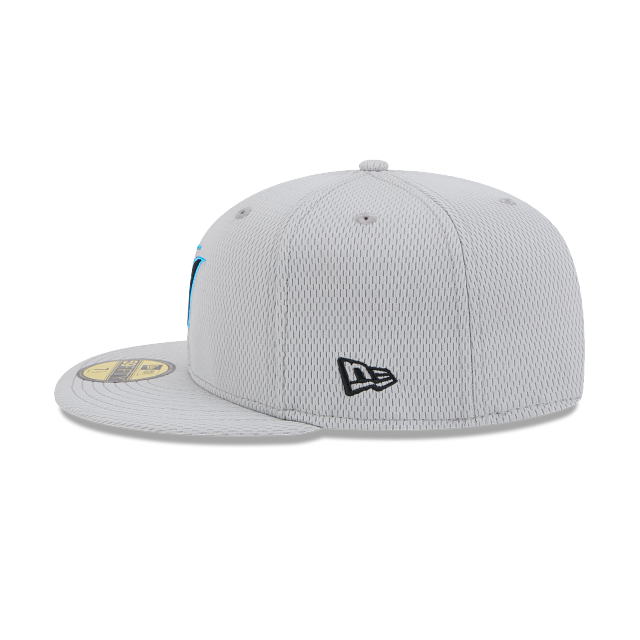 Esta gorra plana New Era 59FIFTY de Miami Marlins de la colección MLB Clubhouse 2025 presenta un diseño en mesh con el logotipo de los Marlins bordado en los paneles frontales, el logo del equipo en el undervisor, una etiqueta con las siglas de la sede del equipo del lado derecho, el MLB Batterman al reverso y el flag de New Era bordado del lado izquierdo. Apoya a tu equipo y cómprala ya.