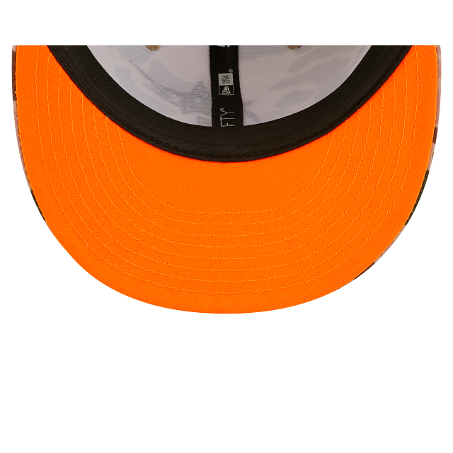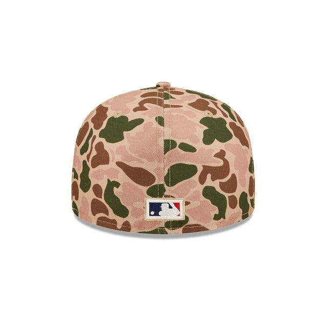 Esta gorra New Era 59FIFTY de Miami Marlins MLB Duck Camo presenta una confección de camuflaje de pato con el logotipo de los Marlins bordado en los paneles frontales, un parche lateral de World Series bordado en el lado derecho y el logotipo de MLB Batterman en la parte trasera. Los detalles adicionales incluyen el undervisor rosa. Cómprala ya.