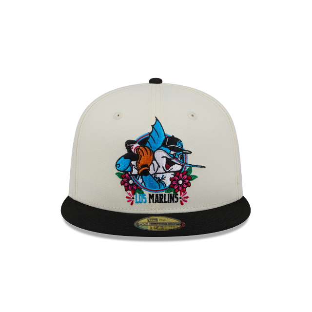 Esta gorra plana New Era 59FIFTY de Miami Marlins de la colección MLB Sugar Skull Mascots presenta la mascota de los Marlins bordada en los paneles frontales, la mascota del equipo alusiva a una calaverita de azúcar del lado derecho y el flag de New Era bordado del lado izquierdo. Cómprala ya.