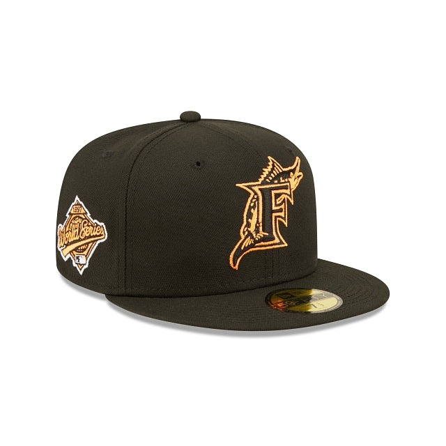 Esta gorra New Era 59FIFTY de Miami Marlinsde la colección MLB Summer Pop presenta un logo de los Marlins en color neón bordado en los paneles frontales con un parche de World Series en el lado derecho y un logotipo de MLB Batterman en la parte trasera. Detalles adicionales incluyen una undervisor con estampado de piel de serpiente. Cómprala ya.