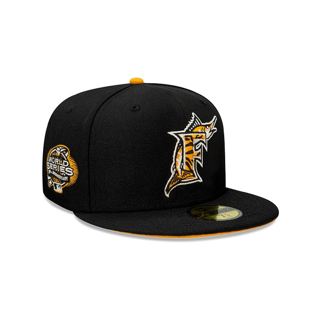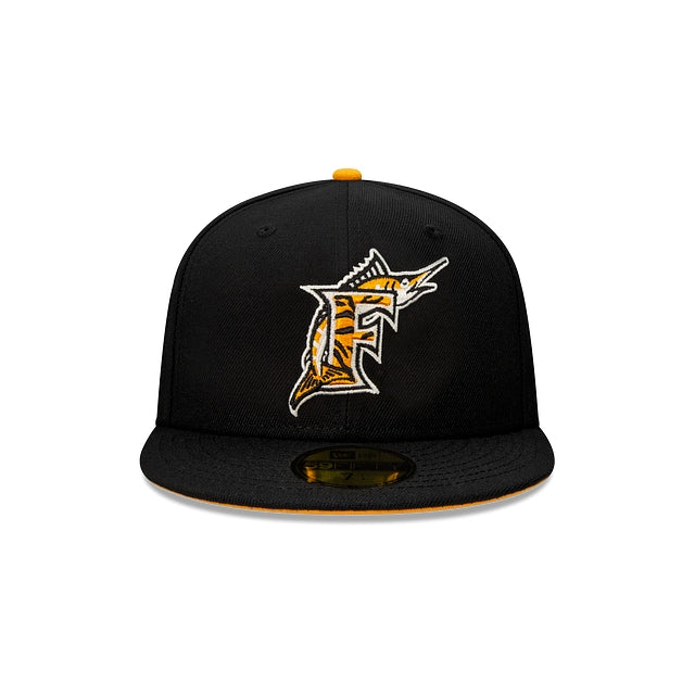 Esta gorra New Era 59FIFTY de Miami Marlins MLB Tiger Fill presenta una fabricación única con lana, un logo de los Marlins bordado en los paneles frontales con patrón de la piel de tigre y un parche de World Series en el lado derecho. Detalles adicionales incluyen el sweatband y undervisor amarillos. Cómprala ya.