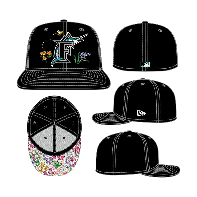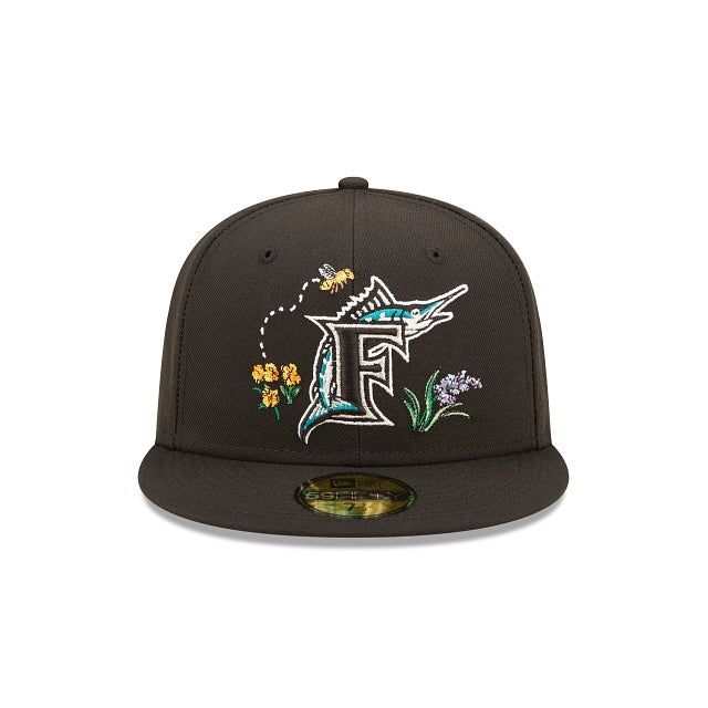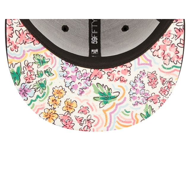 Esta gorra New Era 59FIFTY de Miami Marlins Watercolor Floral presenta un logo de los Marlins bordado en los paneles frontales rodeado de flores de colores y una abeja. Detalles adicionales incluyen undervisor floral. Cómprala ya.