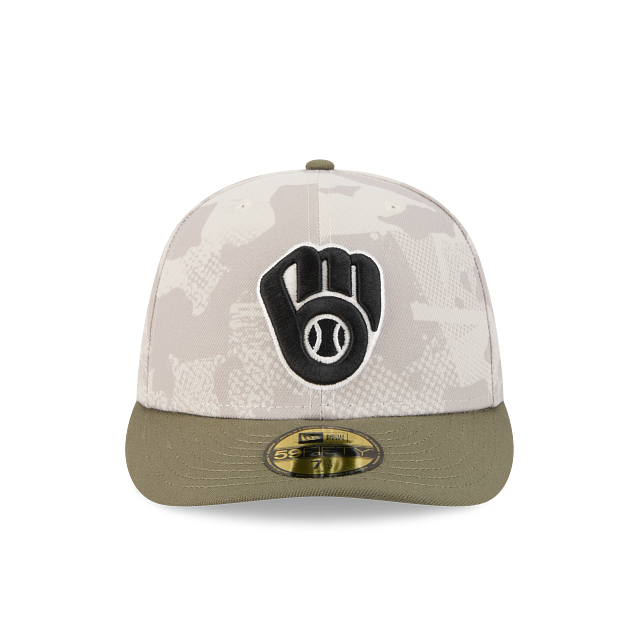 Esta gorra curva New Era 59FIFTY de Milwaukee Brewers de la colección MLB Armed Forces Day 2025 presenta un diseño de camuflaje en la corona con el logotipo de los Brewers bordado en los paneles frontales, la bandera de Estados Unidos del lado derecho, el MLB Batterman al reverso y el flag de New Era bordado del lado izquierdo. Cómprala ya.