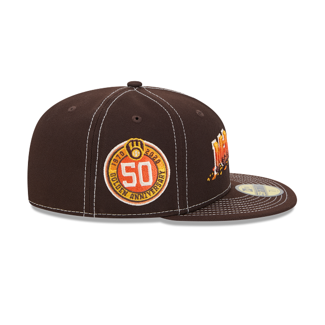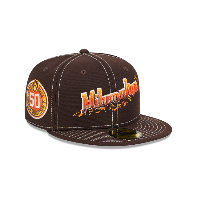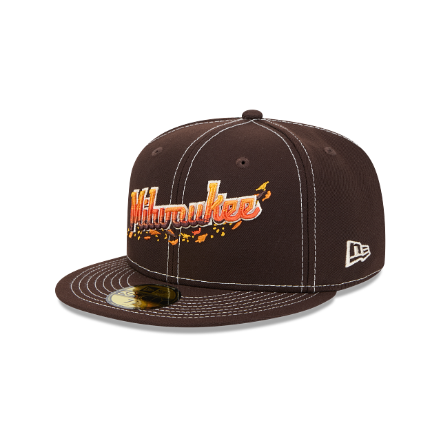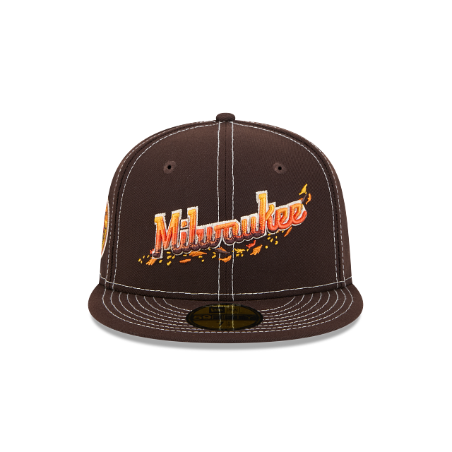 Esta gorra plana New Era 59FIFTY de Milwaukee Brewers de la colección MLB Fall Foliage presenta un diseño inspirado en la estación de otoño con el nombre de la ciudad de los Brewers bordado en los paneles frontales, un parche conmemorativo del lado derecho, el MLB Batterman al reverso y el flag de New Era bordado del lado izquierdo. Cómprala ya.
