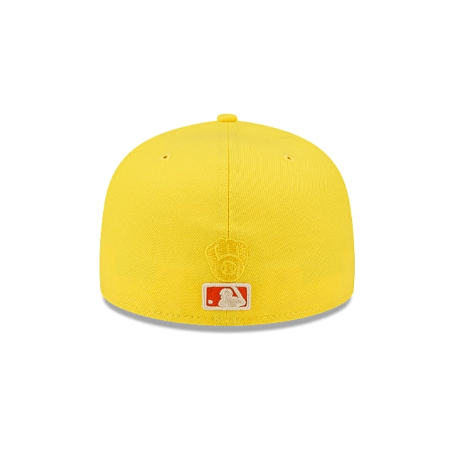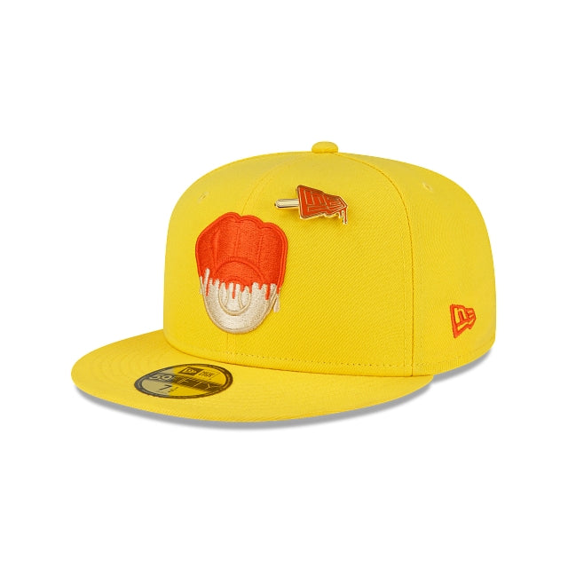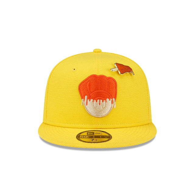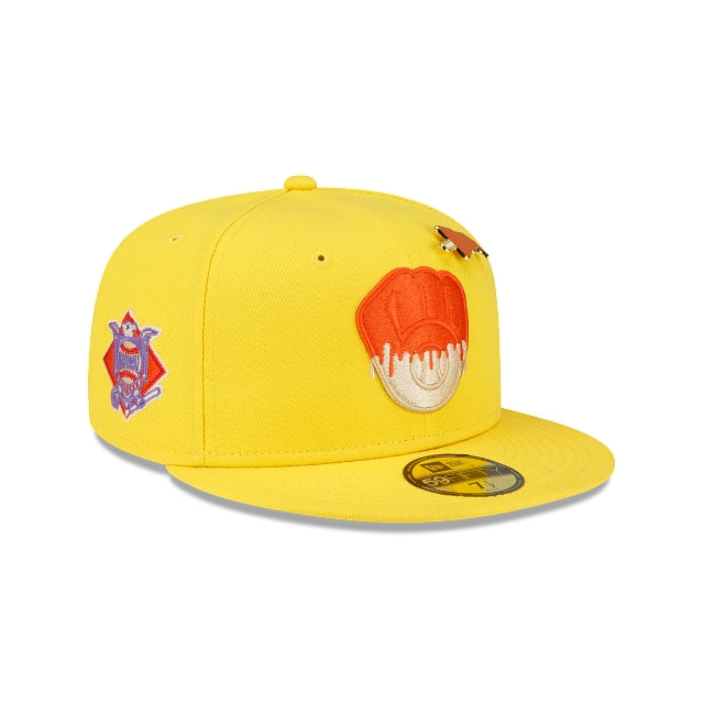 Esta gorra New Era 59FIFTY de Milwaukee Brewers MLB Icy Pop presenta el logotipo de los Brewers en los paneles frontales, el logo de MLB Batterman en la parte trasera y parche de la Liga Nacional en el lado derecho. Detalles adicionales incluyen pin de helado derretido y undervisor rojo. Cómprala ya.