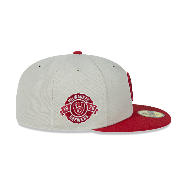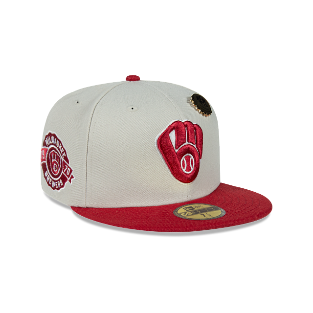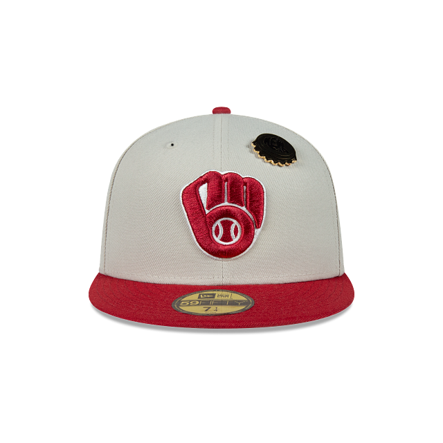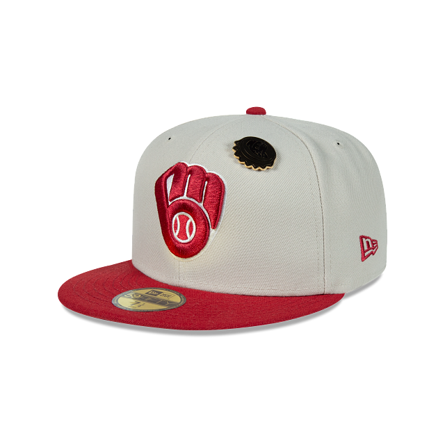 Esta gorra New Era 59FIFTY de Milwaukee Brewers de la colección Beer Pack tiene un pin especial de una corcholata, el logotipo de los Brewers bordado al frente, un diseño en dos tonos con la corona blanca y la visera roja, un parche conmemorativo y el flag de New Era bordado en el lado izquierdo. Únete al Oktoberfest y cómprala ya