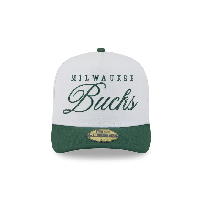 Esta gorra curva New Era 59FIFTY A-Frame de Milwaukee Bucks de la colección NBA Draft 2025 presenta el nombre de los Bucks bordado en los paneles frontales, el logotipo del equipo del lado derecho, el logo de la NBA al reverso y el flag de New Era bordado del lado izquierdo. Cómprala ya.