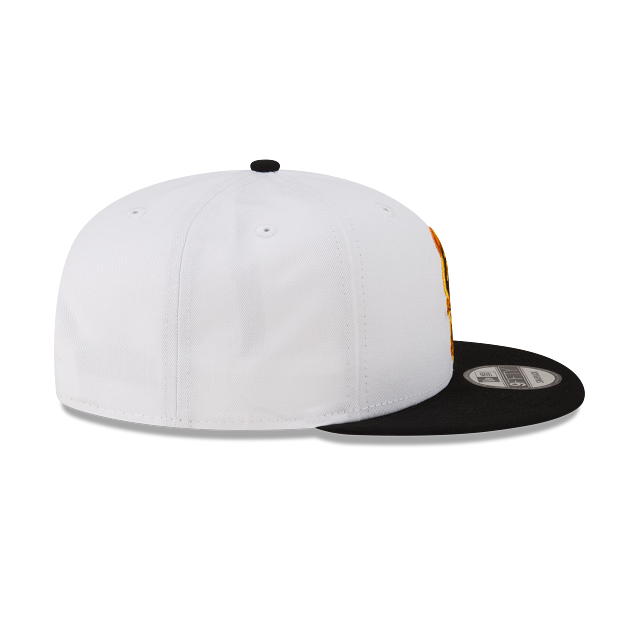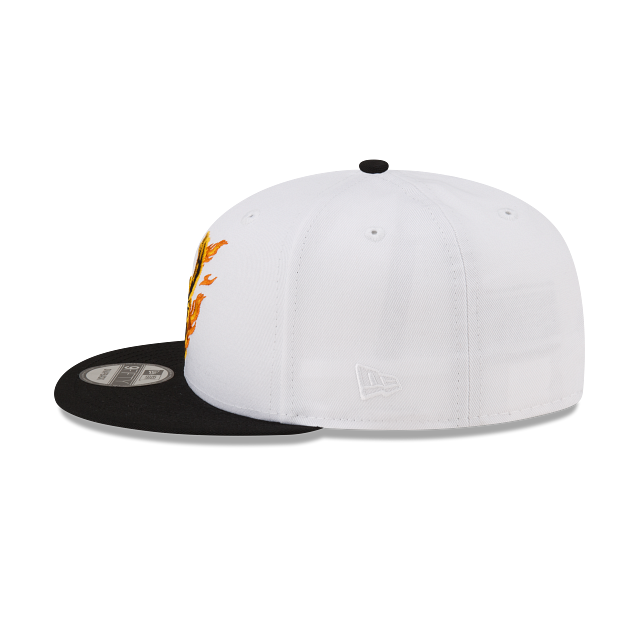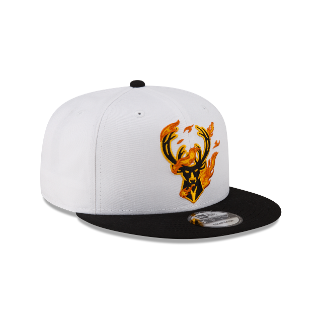 Esta gorra plana New Era 9FIFTY de Milwaukee Bucks de la colección NBA Hot Streak presenta el logotipo de los Bucks con flamas bordado en los paneles frontales, el logo del equipo al reverso y el flag de New Era bordado del lado izquierdo. Cómprala ya.
