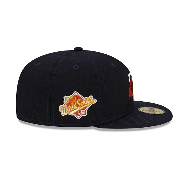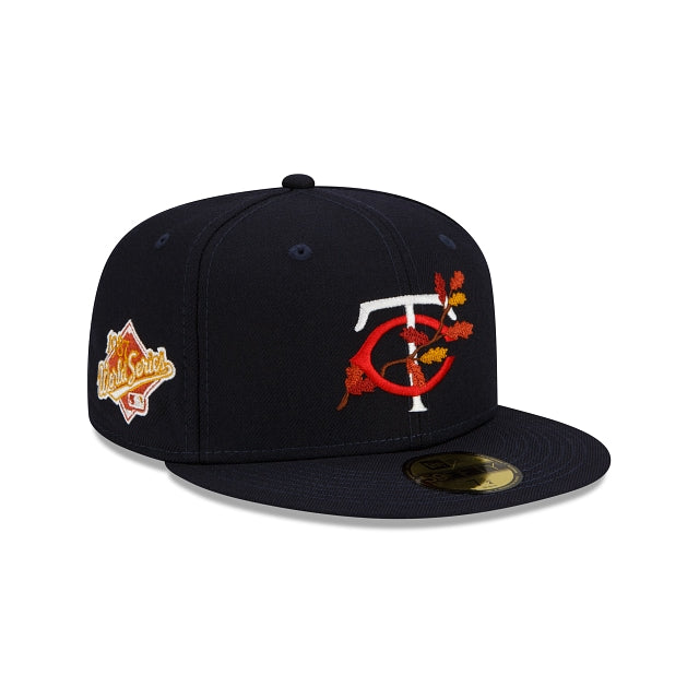 Llegó a New Era esta 59FIFTY de Minnesota Twins MLB Leafy Front la cual presenta el logo de los Twins bordado en los paneles frontales entrelazado con hojas de arce, un parche de World Series en el lado derecho y el logo del equipo bordado en la parte trasera. Detalles adicionales incluyen undervisor anaranjado. Cómprala ya.