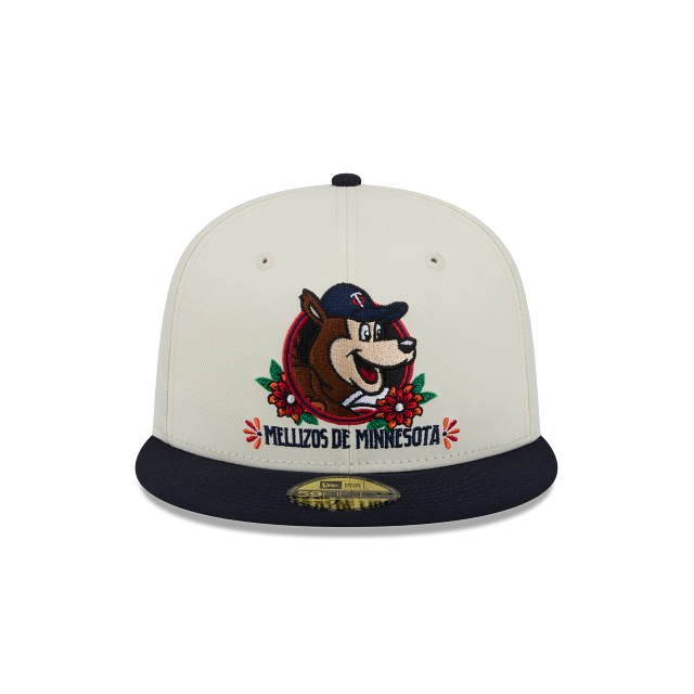Esta gorra plana New Era 59FIFTY de Minnesota Twins de la colección MLB Sugar Skull Mascots presenta la mascota de los Twins bordada en los paneles frontales, la mascota del equipo alusiva a una calaverita de azúcar del lado derecho y el flag de New Era bordado del lado izquierdo. Cómprala ya.