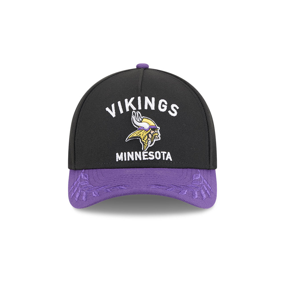 Esta gorra curva New Era 9FORTY M-Crown A-Frame de Minnesota Vikings de la colección NFL Draft 2025 presenta el nombre y logotipo de los Vikings bordados en los paneles frontales, laureles bordados en el visor, el logo de la NFL al reverso y el flag de New Era bordado del lado izquierdo. Cómprala ya.