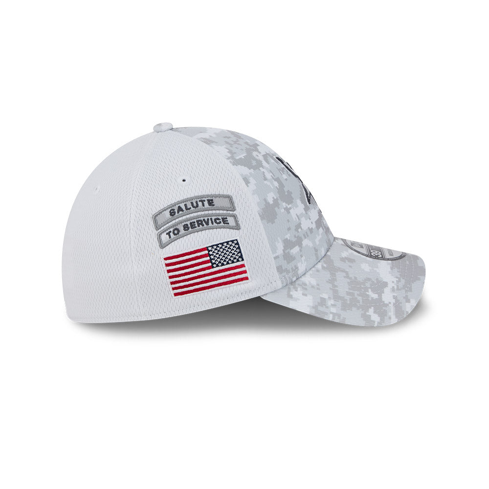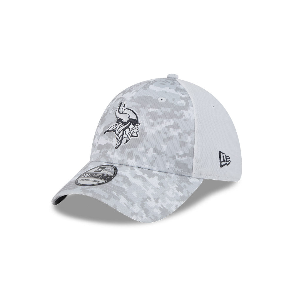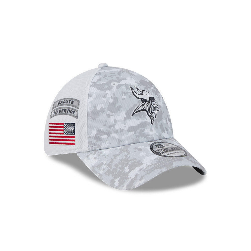 Esta gorra curva New Era 39THIRTY de Minnesota Vikings de la colección NFL Salute to Service 2024 presenta un diseño de camuflaje con el logotipo de los Vikings bordado en los paneles frontales, la bandera de Estados Unidos del lado derecho, el logo de la NFL al reverso y el flag de New Era bordado del lado izquierdo. Apoya a tu equipo y cómprala ya.