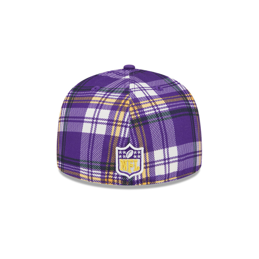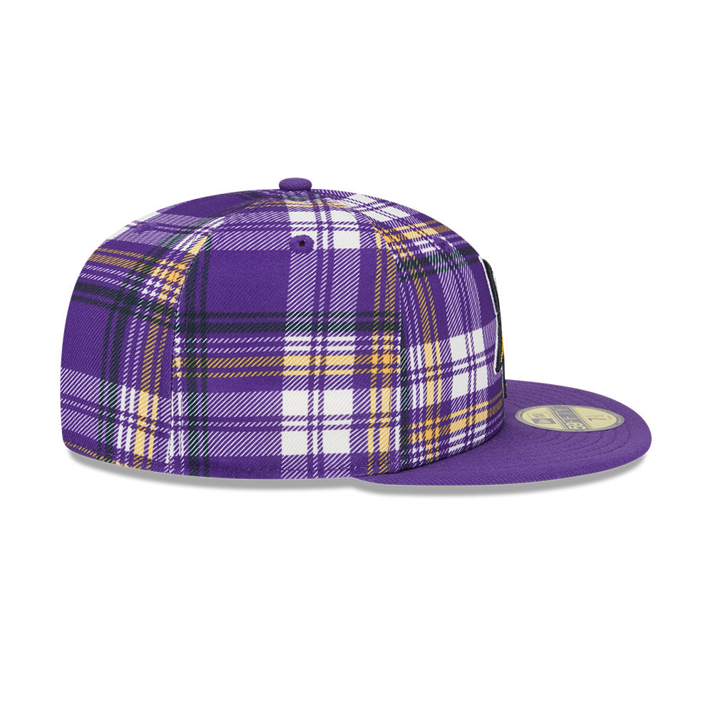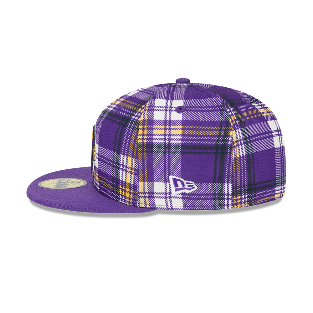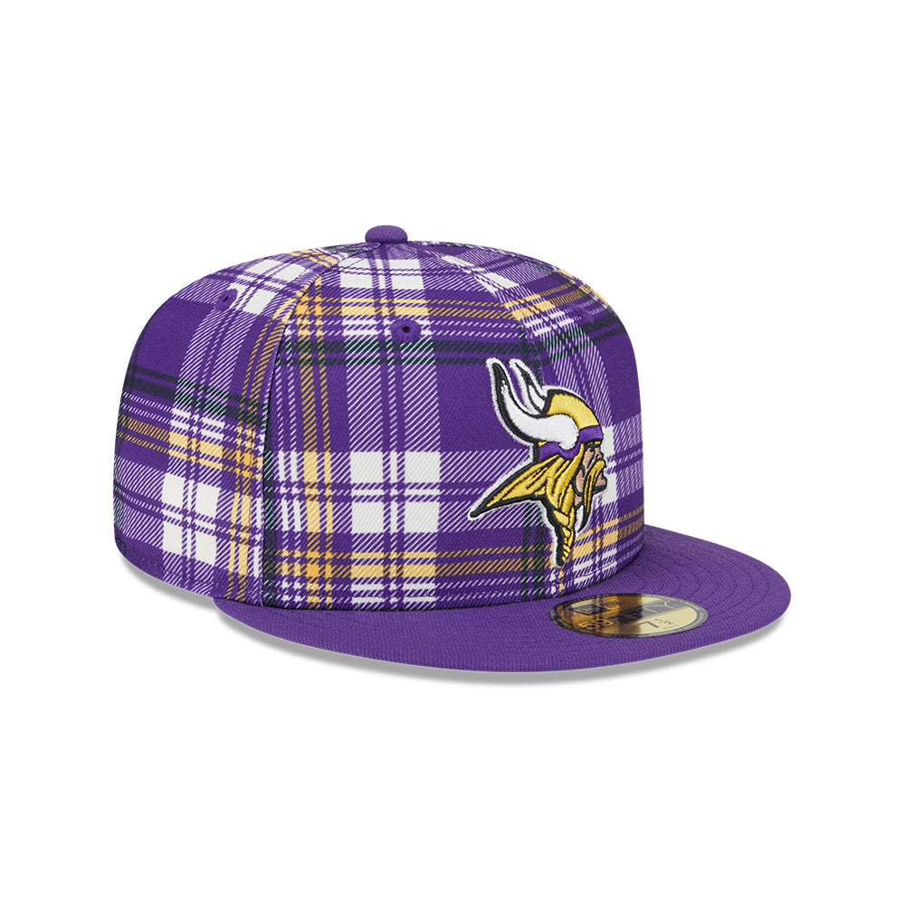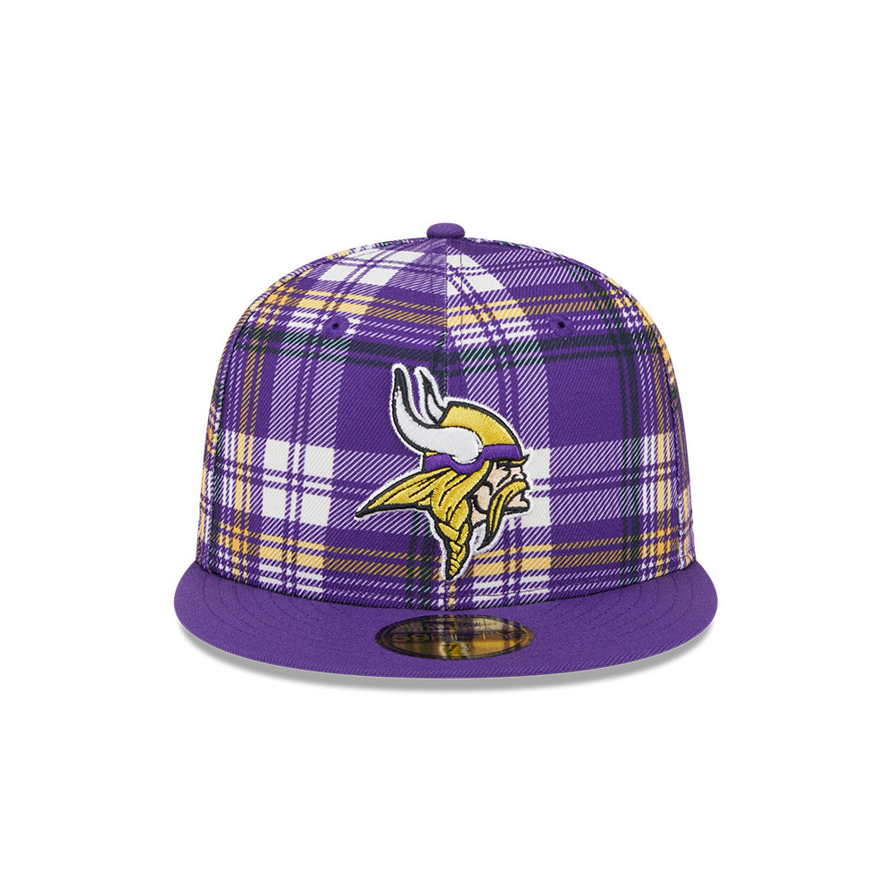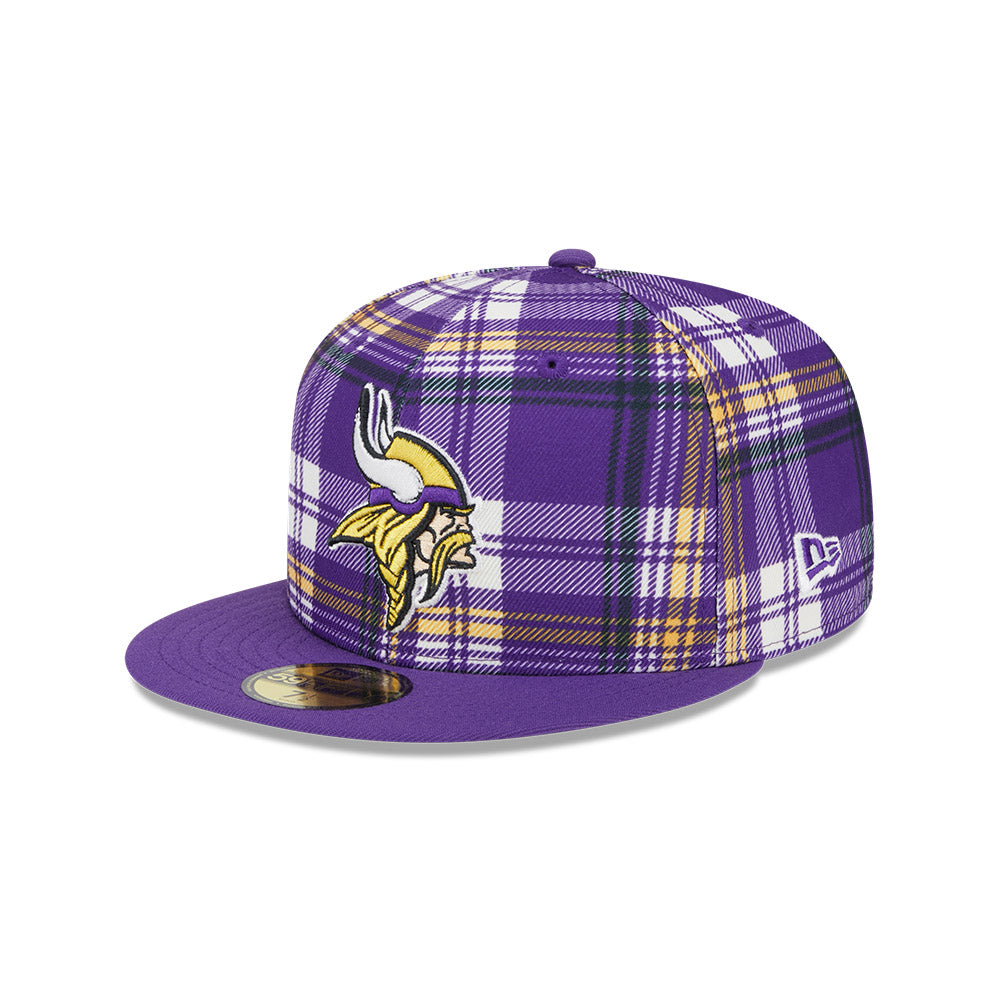 Esta gorra plana New Era 59FIFTY de Minnesota Vikings de la colección NFL Sideline 2024 presenta un diseño a cuadros con el logotipo de los Vikings bordado en los paneles frontales y el flag de New Era bordado en el lado izquierdo. Cómprala ya.