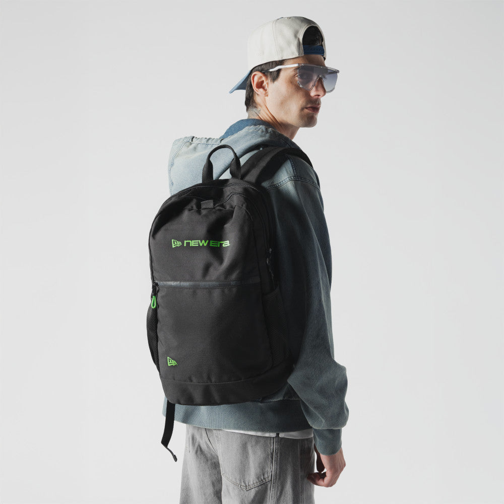 Esta Mochila New Era presenta un diseño en color negro con detalles en color verde con el logo y flag de New Era. Presenta un diseño funcional y estilo urbano, ideal para llevar todo lo esencial con comodidad y actitud. Cómprala ya.