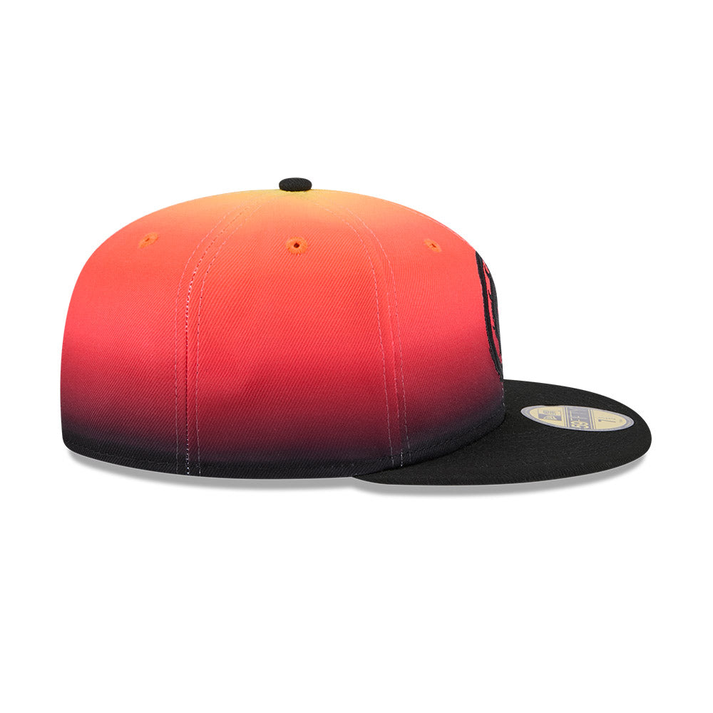 Esta gorra plana New Era 59FIFTY de la colección Mortal Kombat presenta un diseño con efecto de color degradado con el logotipo de Mortal Kombat bordado en los paneles frontales y el flag de New Era bordado del lado izquierdo. Haz el golpe final y cómprala ya.