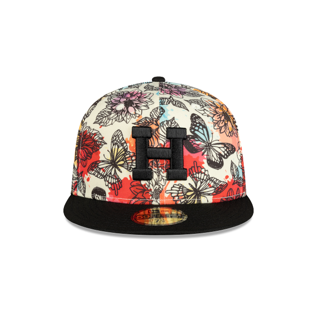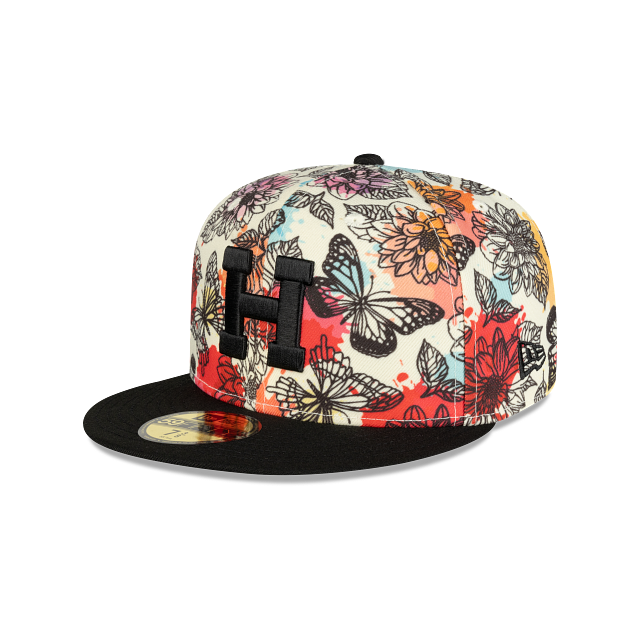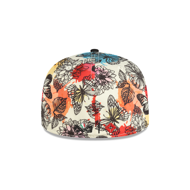 Esta gorra plana New Era 59FIFTY de Naranjeros de Hermosillo de la colección LAMP Team Exclusive presenta un diseño de mariposas con el logotipo de los Naranjeros bordado en los paneles frontales y el flag de New Era bordado del lado izquierdo. Apoya a tu equipo y cómprala ya.