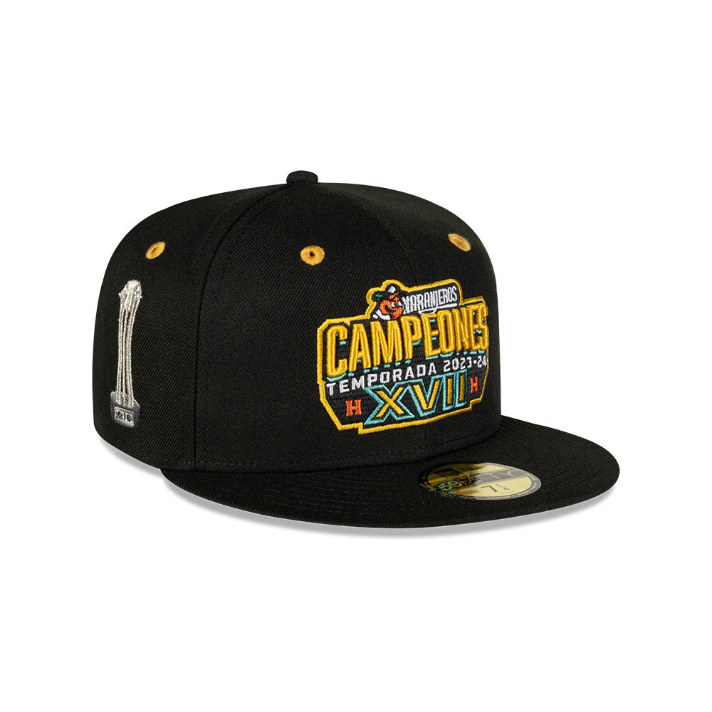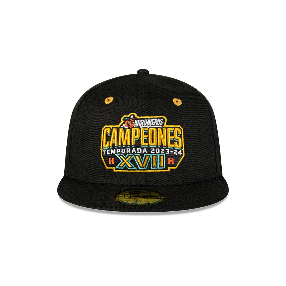 Esta gorra plana New Era 59FIFTY de Naranjeros de Hermosillo de la colección LAMP Game Caps 2024 presenta un diseño con un bordado de Naranjeros Campeones en los paneles frontales, el trofeo del campeonato del lado derecho, el logo de la LAMP al reverso y el flag de New Era bordado del lado izquierdo. Cómprala ya.