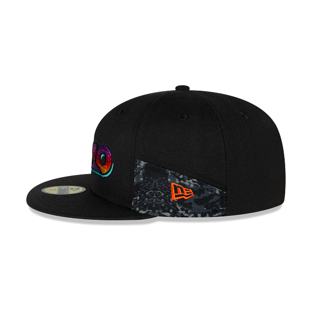 Esta gorra New Era 59FIFTY de los Naranjeros de Hermosillo de la colección LAMP Camo presenta un diseño negro con partes de camuflaje, el nombre de la ciudad de los Naranjeros con colores bordado en los paneles frontales, el nombre al reverso y el flag de New Era bordado en el lado izquierdo. Apoya a tu equipo y cómprala ya.