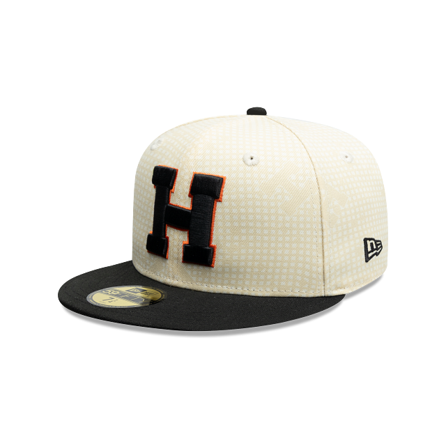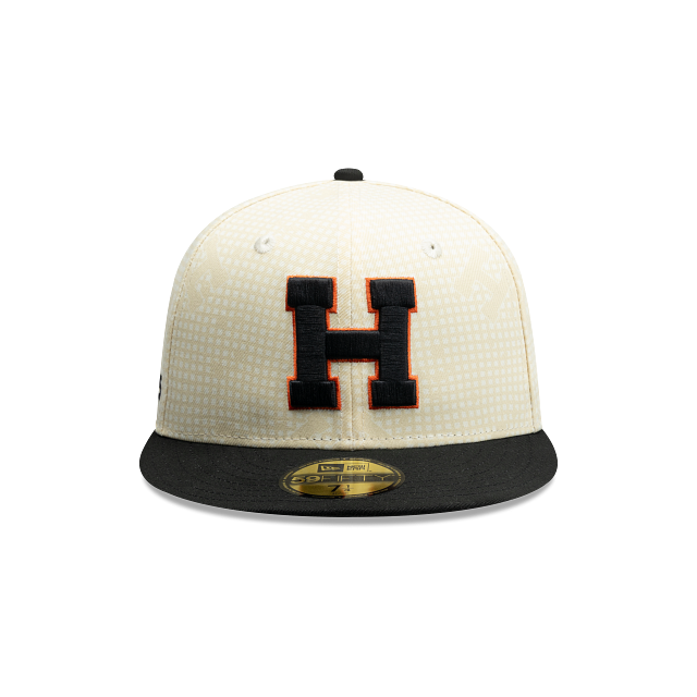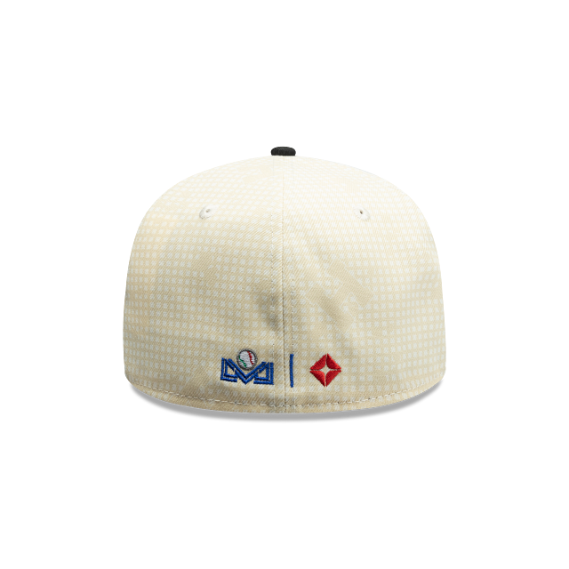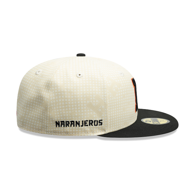 Esta gorra plana New Era 59FIFTY de Naranjeros de Hermosillo de la colección LAMP Midnight Camo presenta un diseño de camuflaje con patrón cuadriculado, el logotipo de los Naranjeros bordado en los paneles frontales, el logo de la LAMP en la parte de atrás y el flag de New Era bordado del lado izquierdo. Cómprala ya.