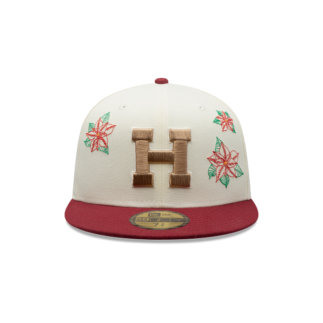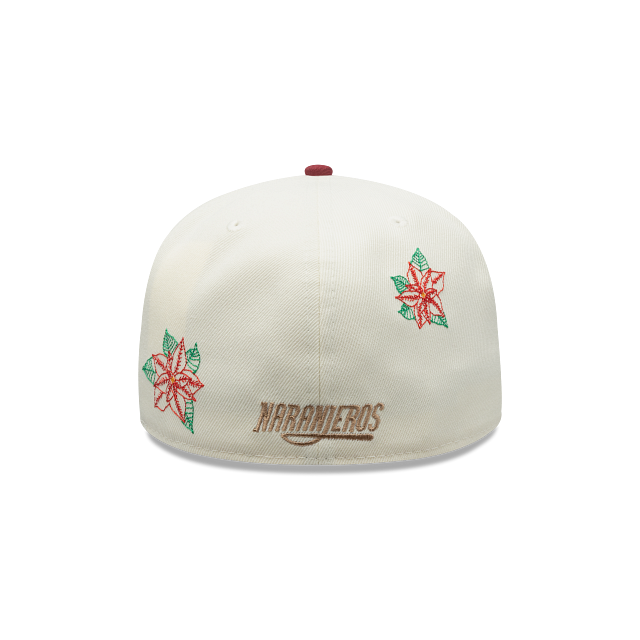 Esta gorra plana New Era 59FIFTY de Naranjeros de Hermosillo de la colección LAMP Nochebuena presenta un diseño con flores de nochebuena bordadas en la corona, el logotipo de los Naranjeros bordado en los paneles frontales, el nombre del equipo en la parte de atrás y el flag de New Era bordado del lado izquierdo. Cómprala ya.