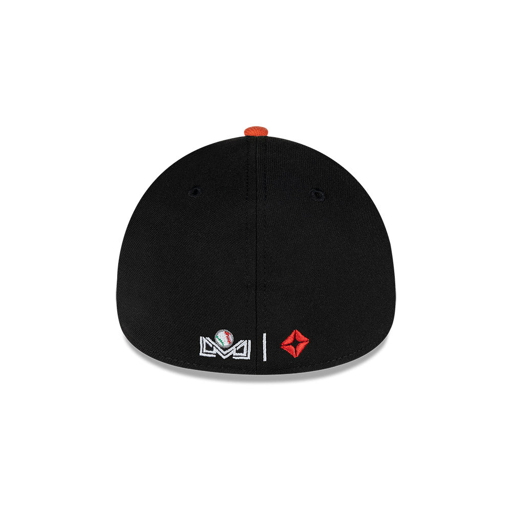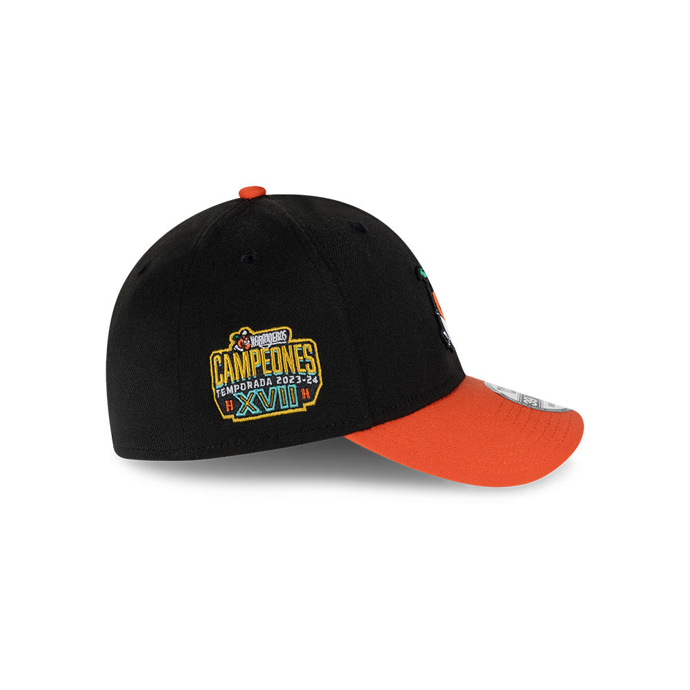 Esta gorra curva New Era 39THIRTY de Naranjeros de Hermosillo de la colección LAMP Game Caps 2024 presenta un diseño con la mascota de los Naranjeros bordado en los paneles frontales, un parche de campeones del lado derecho, el logo de la LAMP al reverso y el flag de New Era bordado del lado izquierdo. Cómprala ya.