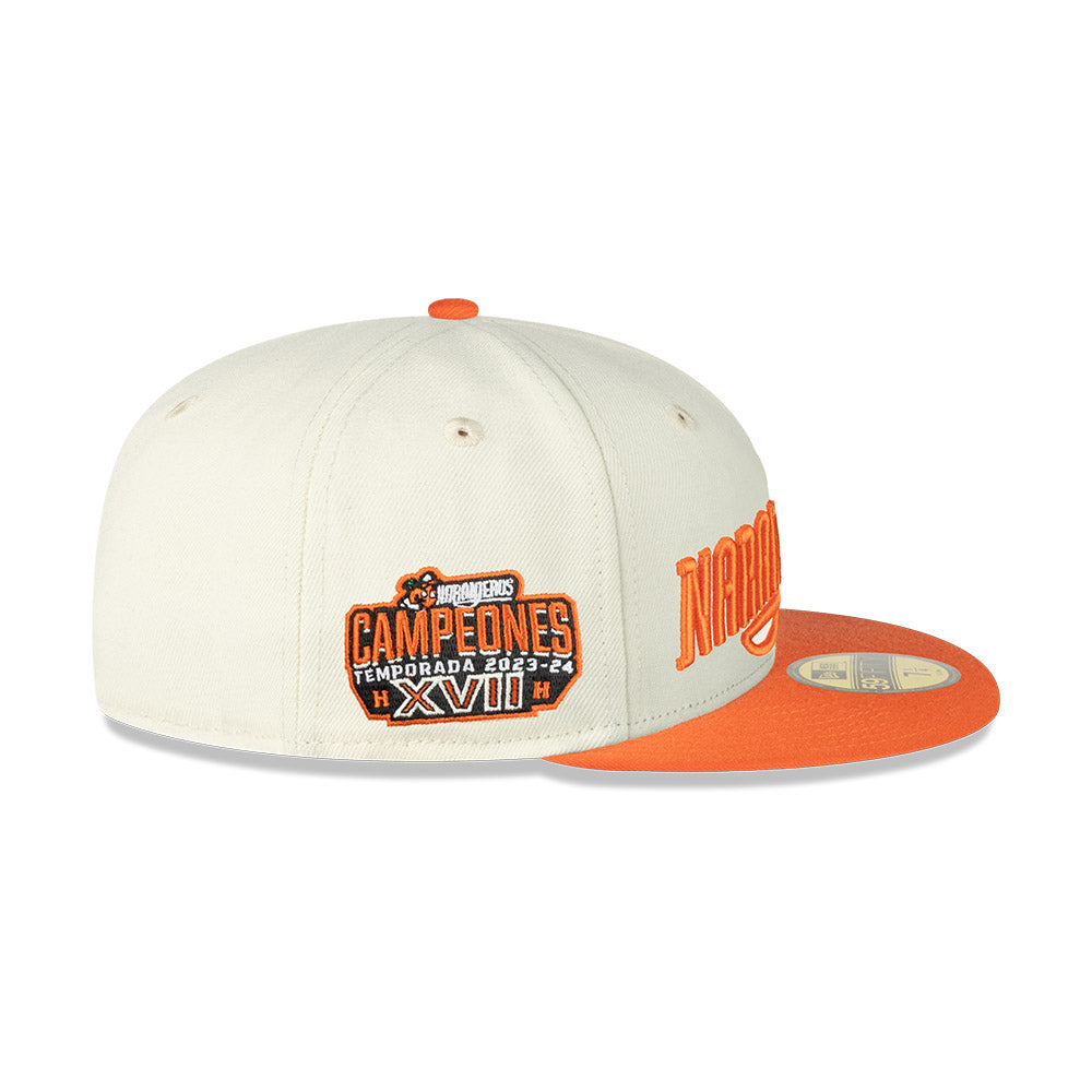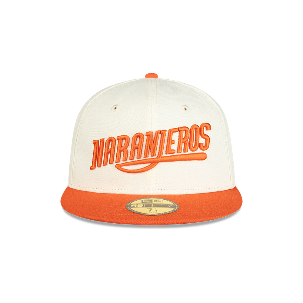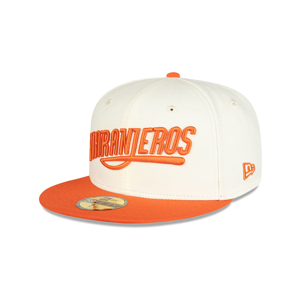 Esta gorra plana New Era 59FIFTY de Naranjeros de Hermosillo de la colección LAMP Game Caps 2024 presenta un diseño con el nombre de los Naranjeros bordado en los paneles frontales, parche conmemorativo del lado derecho, el logo de la LAMP al reverso y el flag de New Era bordado del lado izquierdo. Cómprala ya.